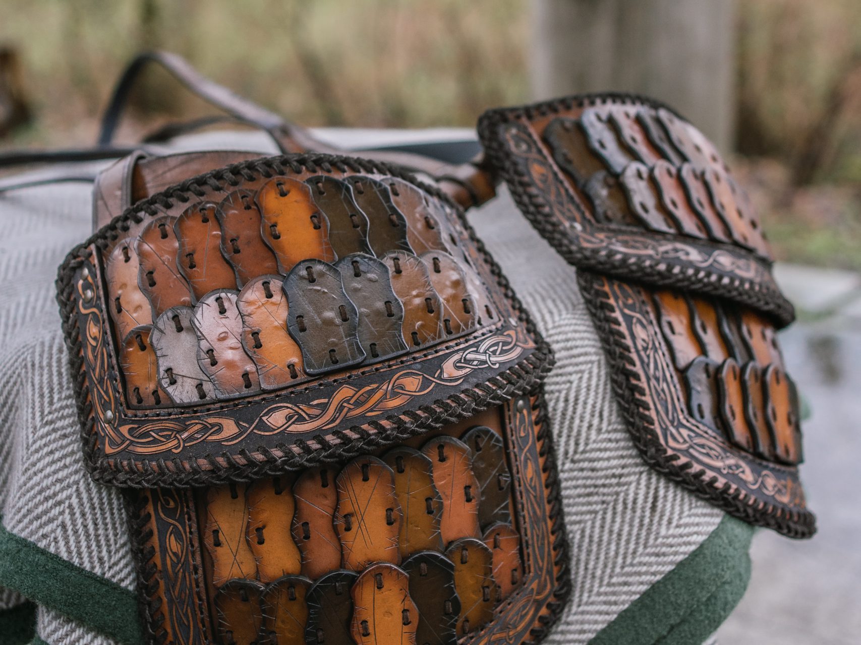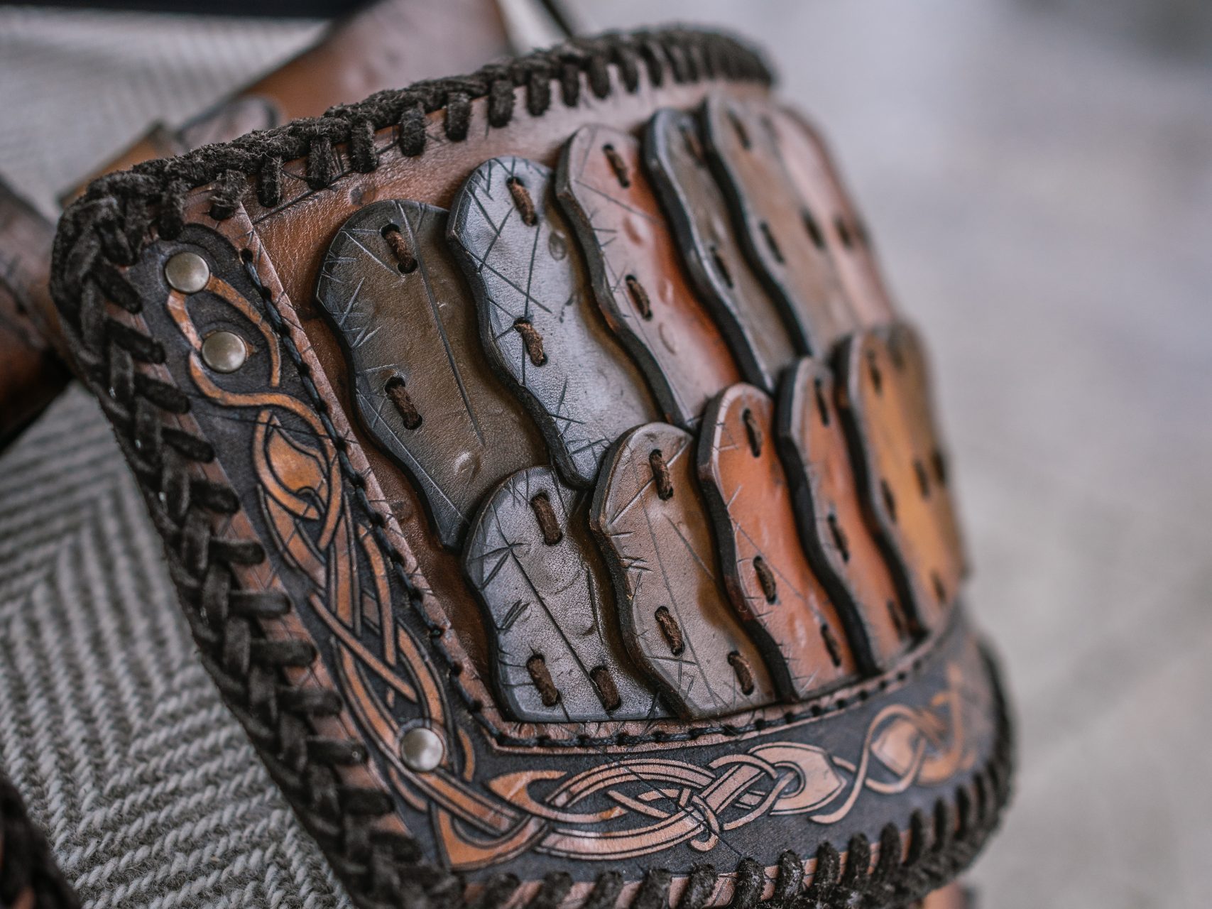 Die Jörmungandr Armschienen bestehen aus 3mm handgefärbtem Naturleder. Diese Armschienen sind angelehnt an die große Schlangenmythologie. Eine ganz andere Herangehensweise an Armschienen und definitiv ein einzigartiges Stück.